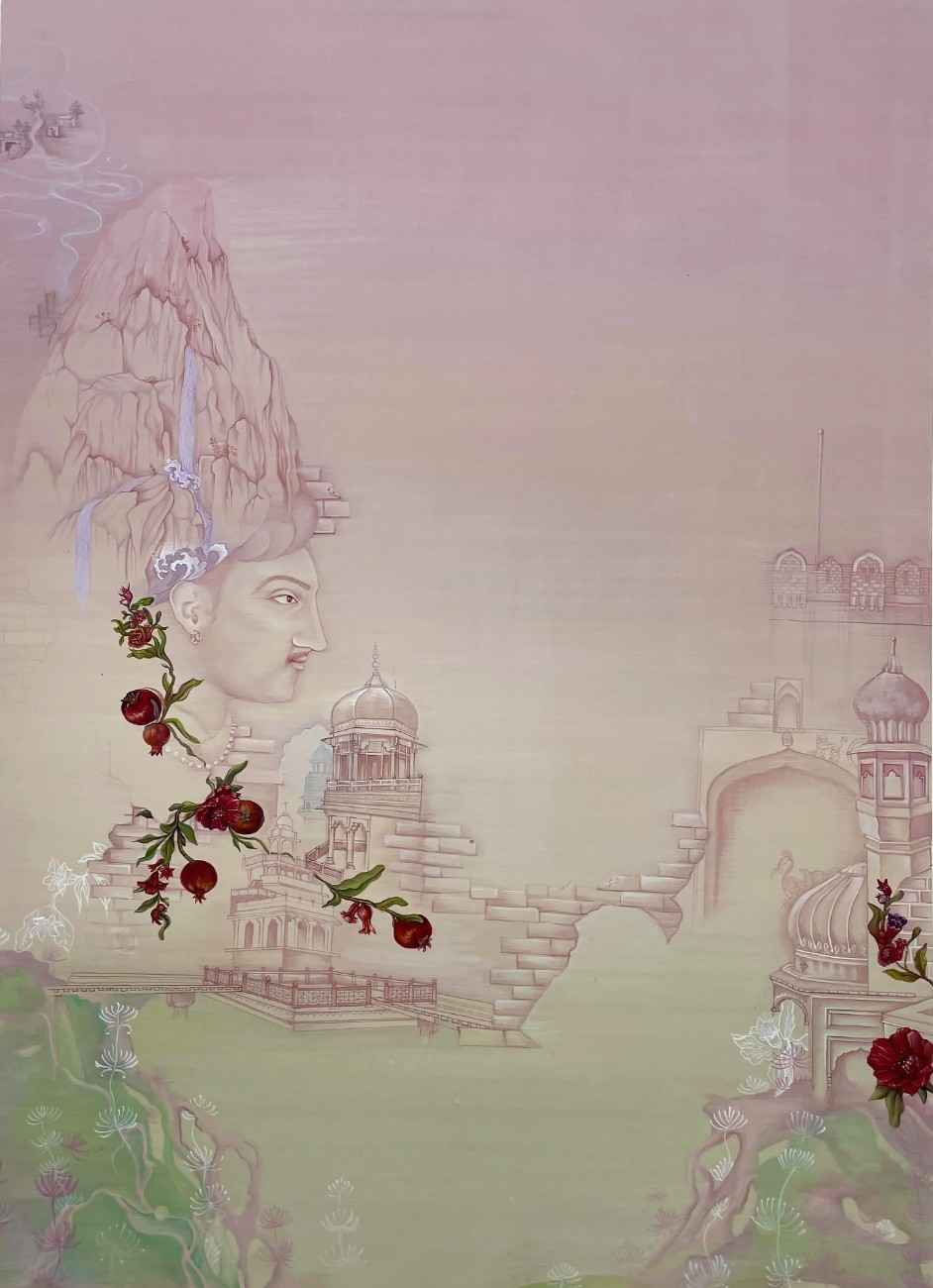 Fatima Maqbool is a miniature artist based in Islamabad, with a BFA from NCA Rawalpindi (2025). Her work explores memory, impermanence, and architecture through detailed gouache paintings on wasli. By reviving forgotten ruins and relics, she connects past and present, inviting reflection on the fragility of existence and the layered nature of time.