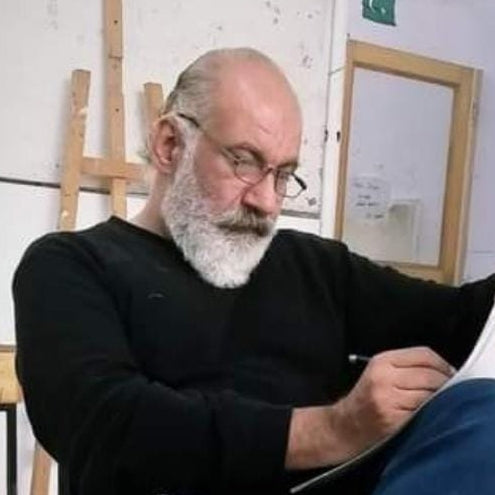 Professor Muhammad Asif Sharif, a renowned sculptor, fresco artist, and academician, is Director of FADFA at the University of Gujrat since 2014. A graduate of NCA Lahore, he has exhibited nationally and internationally, earning the Charles Wallace Trust award in 2004. He has taught at leading art institutions and continues to work between Lahore and Gujrat.