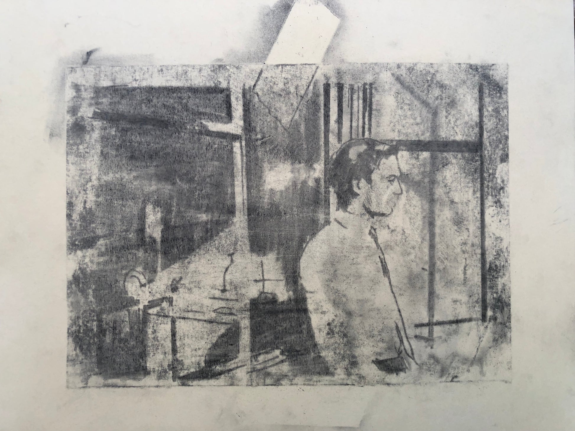 Sunlight on the Kitchen Plates, Figurative Painting by Hijab Rizwan, Charcoal on Canvas, 11 x 9 inches