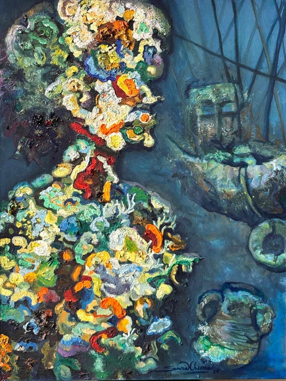 "In the Sea", Figurative Painting by Samra Cheema, Oil on Canvas, 17.8 × 23.6 inches