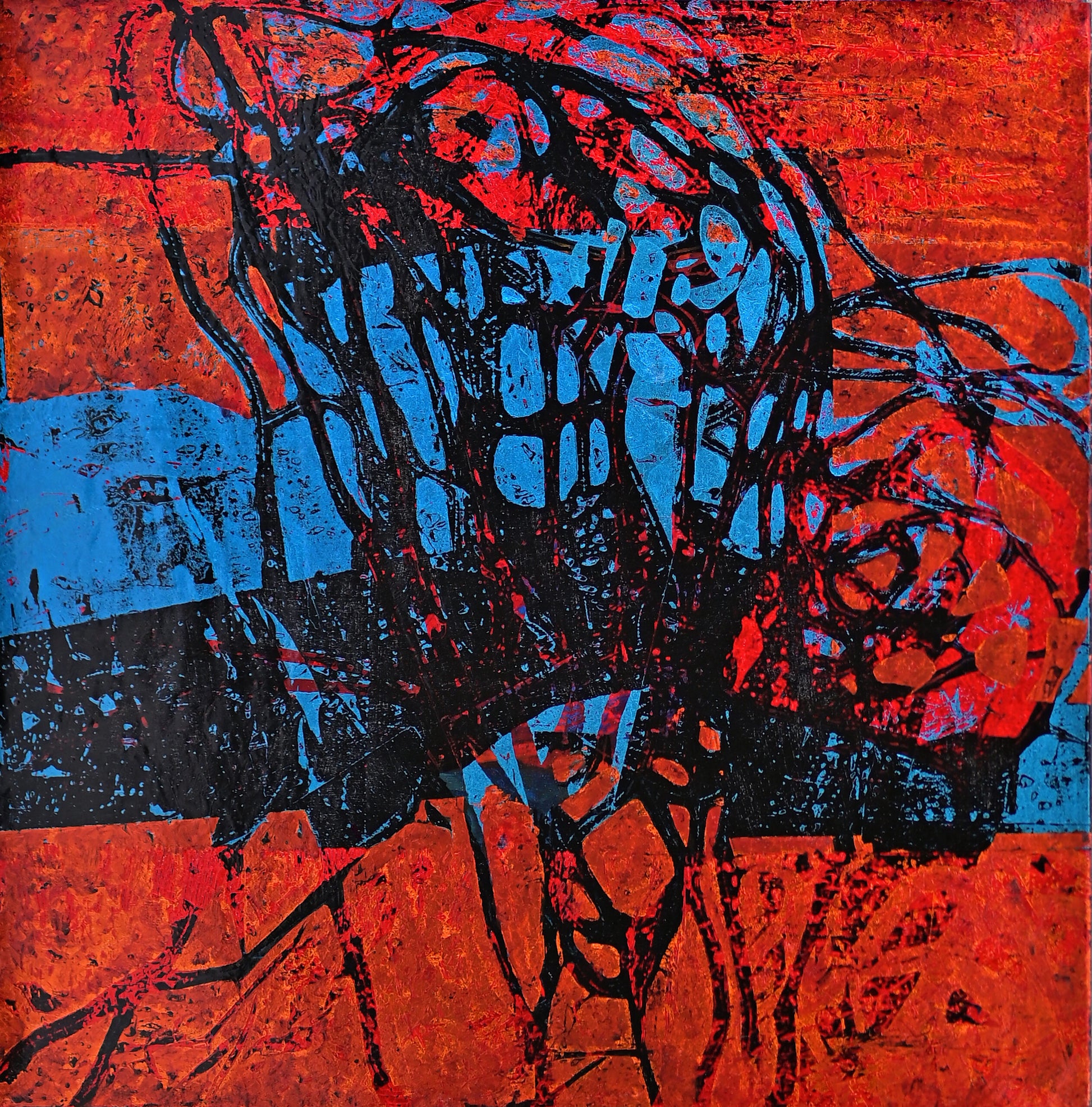 Interwoven Strengths - II, Abstract Painting by Abid Hasan, Mixed Media on Canvas, 23.6 x 23.6 inches