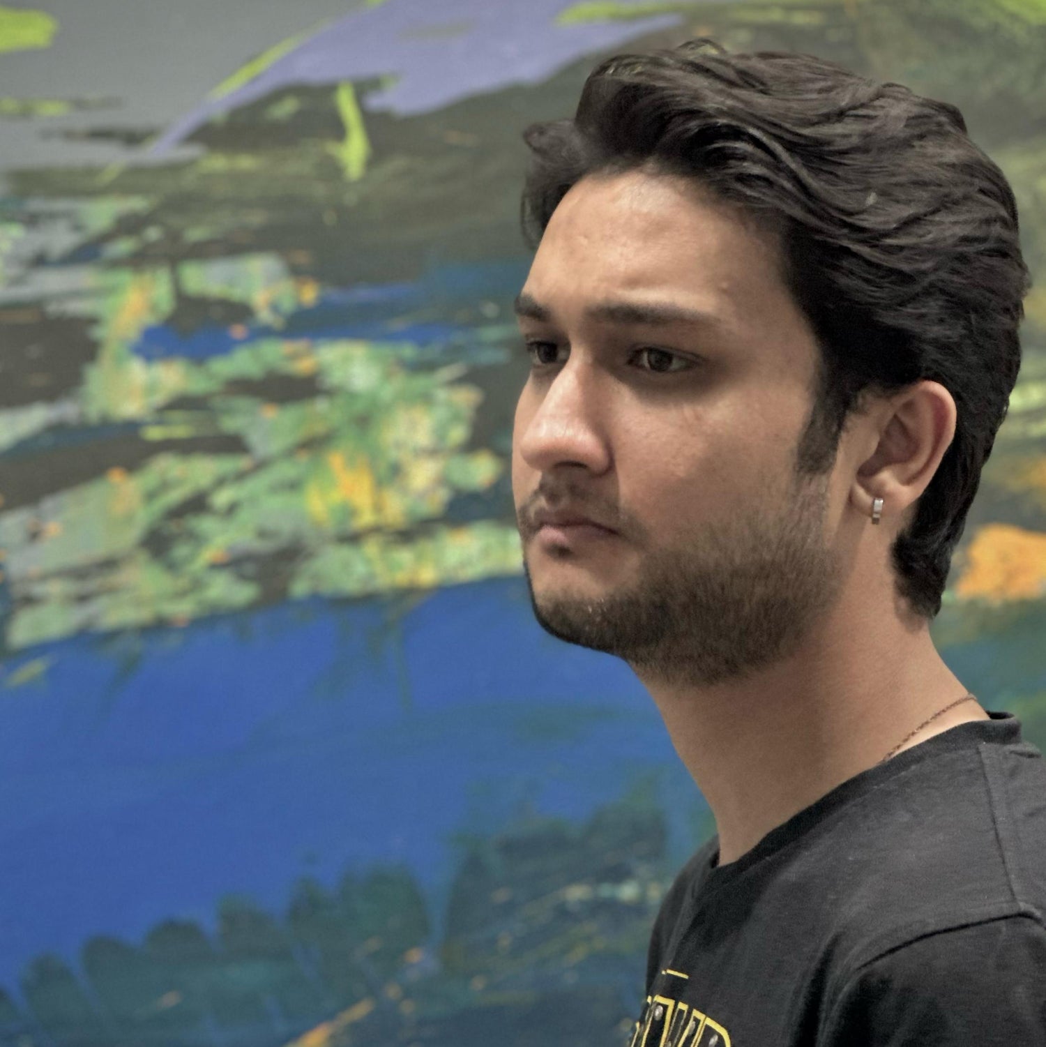 Swarim Abid Hasan (b. 2003) is a Karachi-based visual artist known for his silver leaf and oxidation-based paintings exploring time, decay, and transformation. A graduate of NCA Lahore, he has exhibited in Lahore and created public murals in Karachi and Lahore. His work blends traditional techniques with experimental processes, revealing beauty in deterioration and the passage of time.