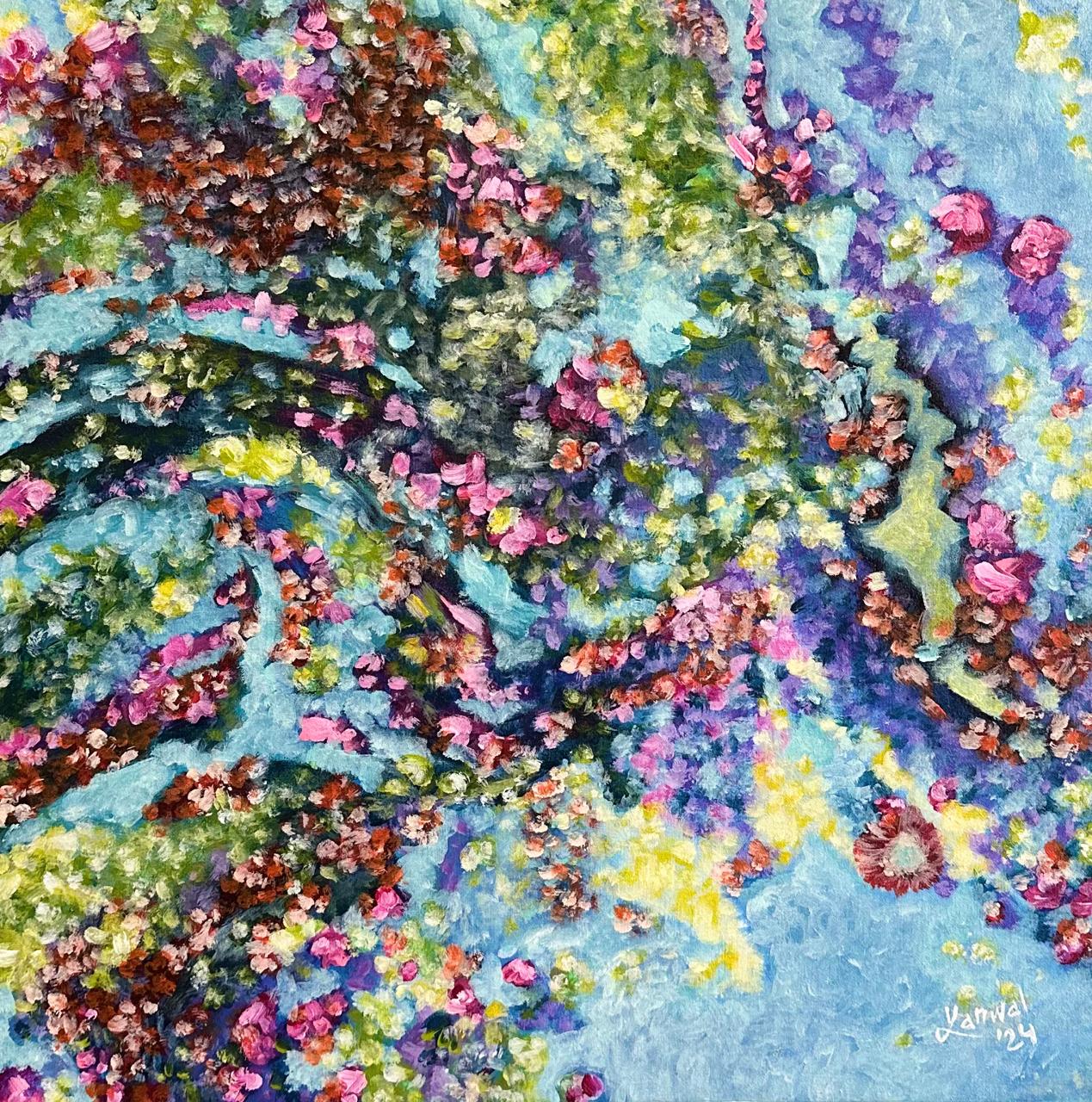 Memories of a Winter Garden, Floral Painting by Kanwal Zafar, Acrylic on Canvas, 18 x 18 inches