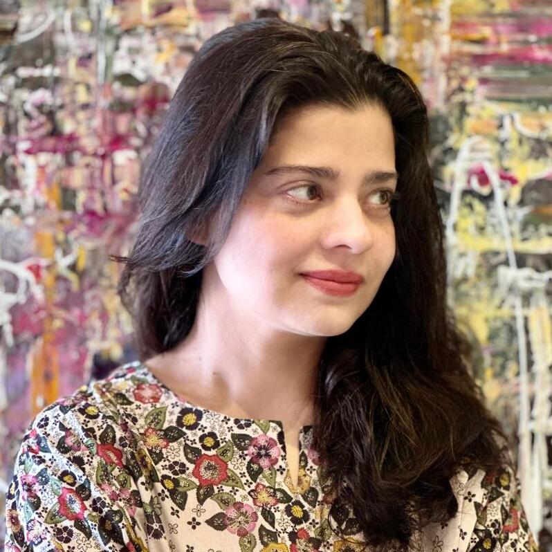 Kanwal Zafar is a Pakistani abstract expressionist painter whose vibrant works explore energy, frequency, and the unseen realms of existence. Holding an MFA from Fatima Jinnah Women University, she has exhibited globally and received accolades like the Hemera Tending Spaces Fellowship. Her art, influenced by intuition and spirituality, is held in collections worldwide.