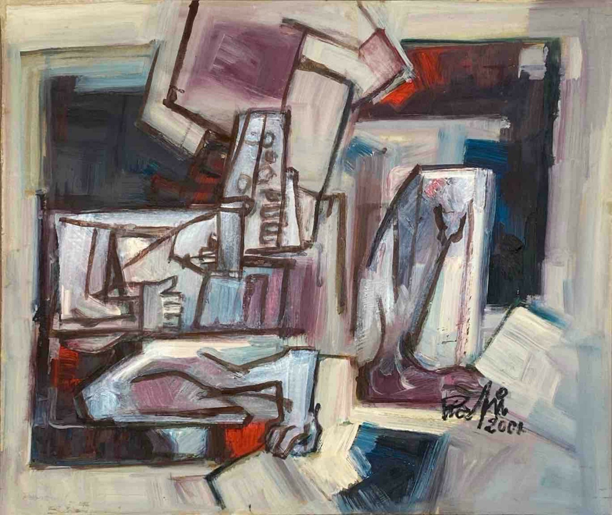 Mansoor Rahi (b. 1939) is a prominent Pakistani abstractionist painter, known for his cubist style and influence on local art. His work evolved from impressionism to abstraction, reflecting social and political issues, particularly terrorism. He taught at the Karachi School of Art, mentoring many artists. His notable series include Grey Genesis and The Black Terror, earning him numerous awards, including Pakistan's Pride of Performance in 200.