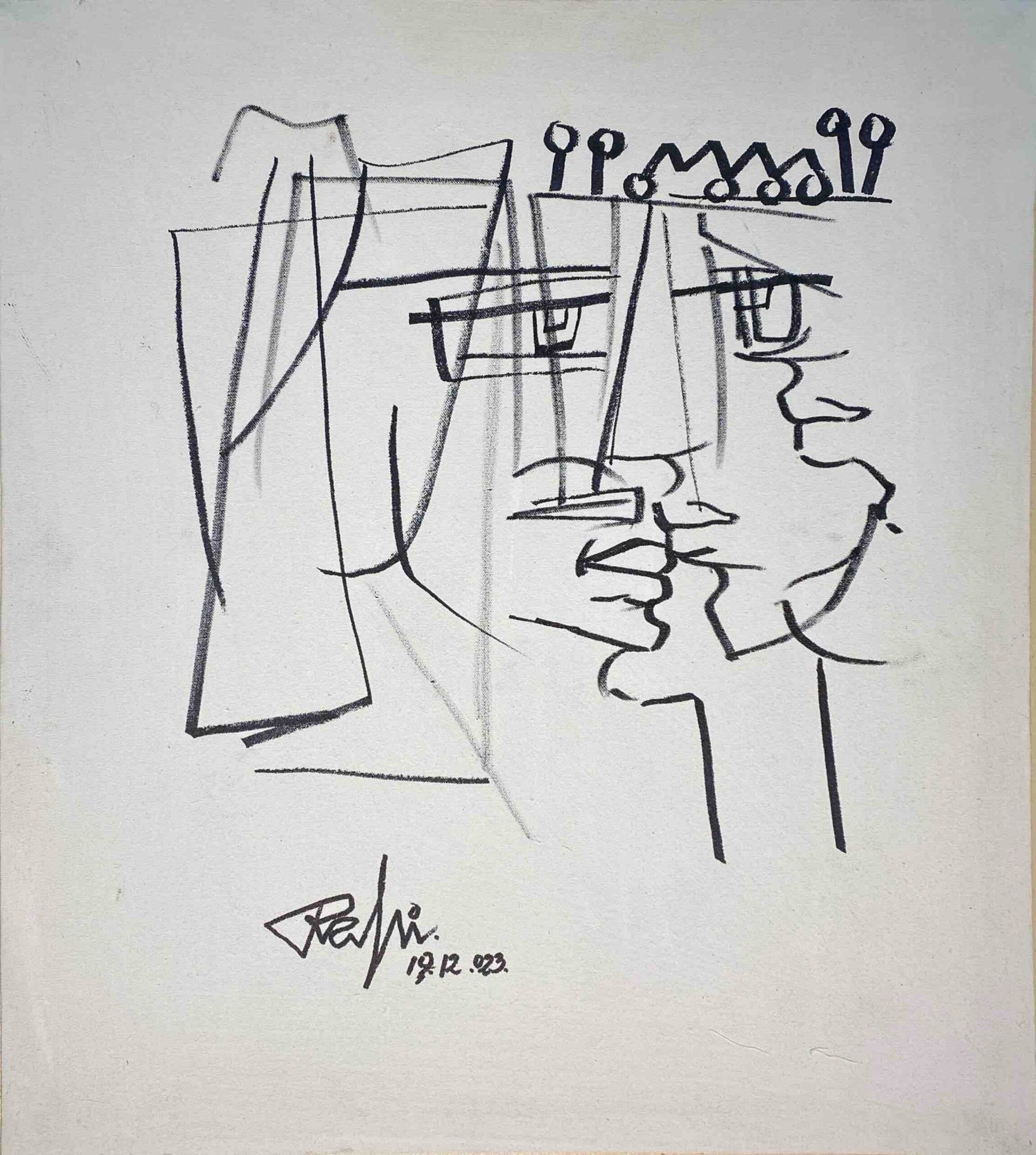Mansoor Rahi (b. 1939) is a prominent Pakistani abstractionist painter, known for his cubist style and influence on local art. His work evolved from impressionism to abstraction, reflecting social and political issues, particularly terrorism. He taught at the Karachi School of Art, mentoring many artists. His notable series include Grey Genesis and The Black Terror, earning him numerous awards, including Pakistan's Pride of Performance in 200.