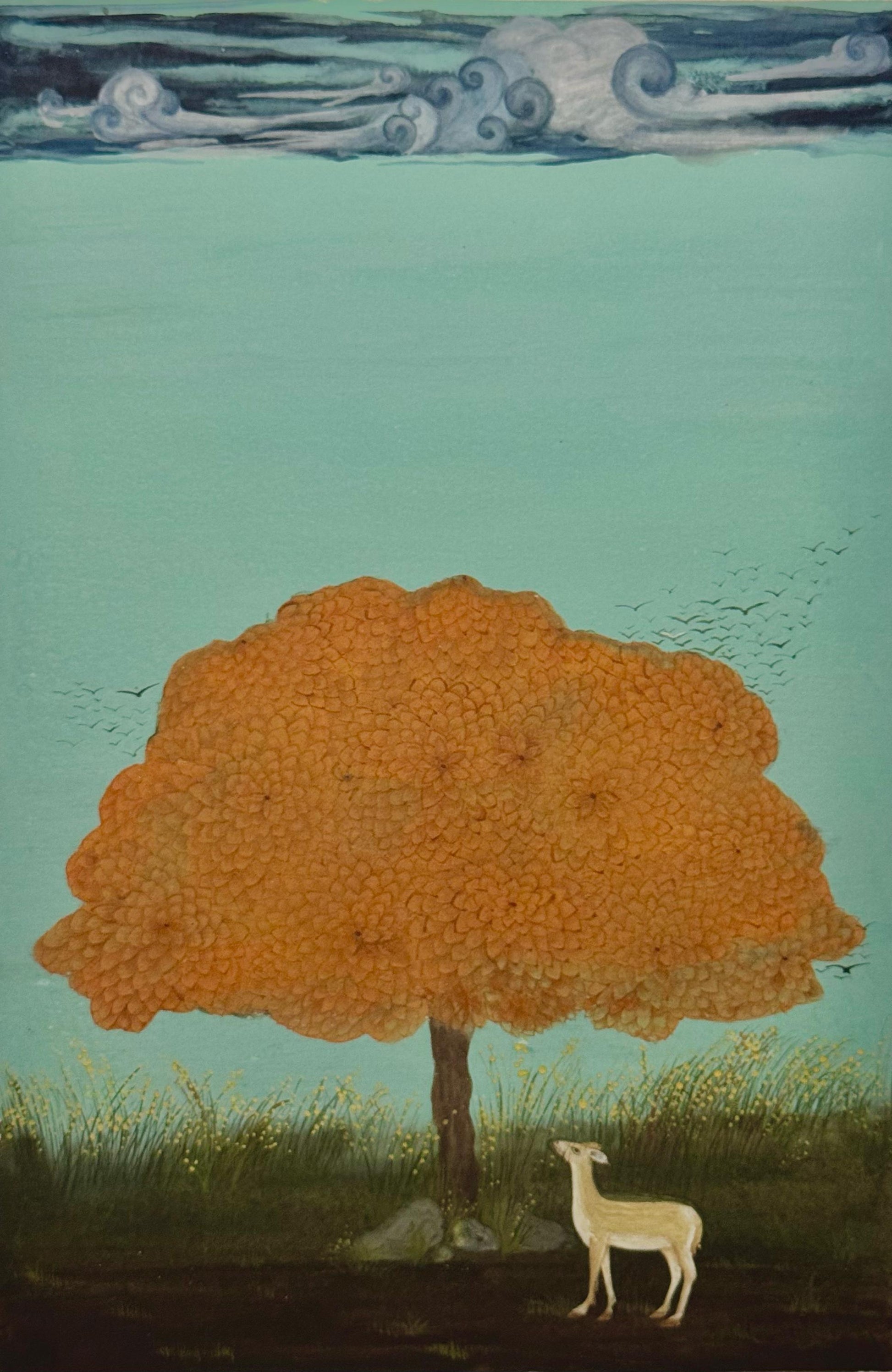 Maheen Elahi is a Lahore-based miniature artist and recent NCA graduate. Her work blends reality and dream, focusing on night skies and silhouetted trees in layered blues. Through these motifs, she explores solitude, mystery, and inner worlds, inviting viewers into serene, suspended moments that blur the line between the seen and imagined, inspiring quiet reflection and wonder.