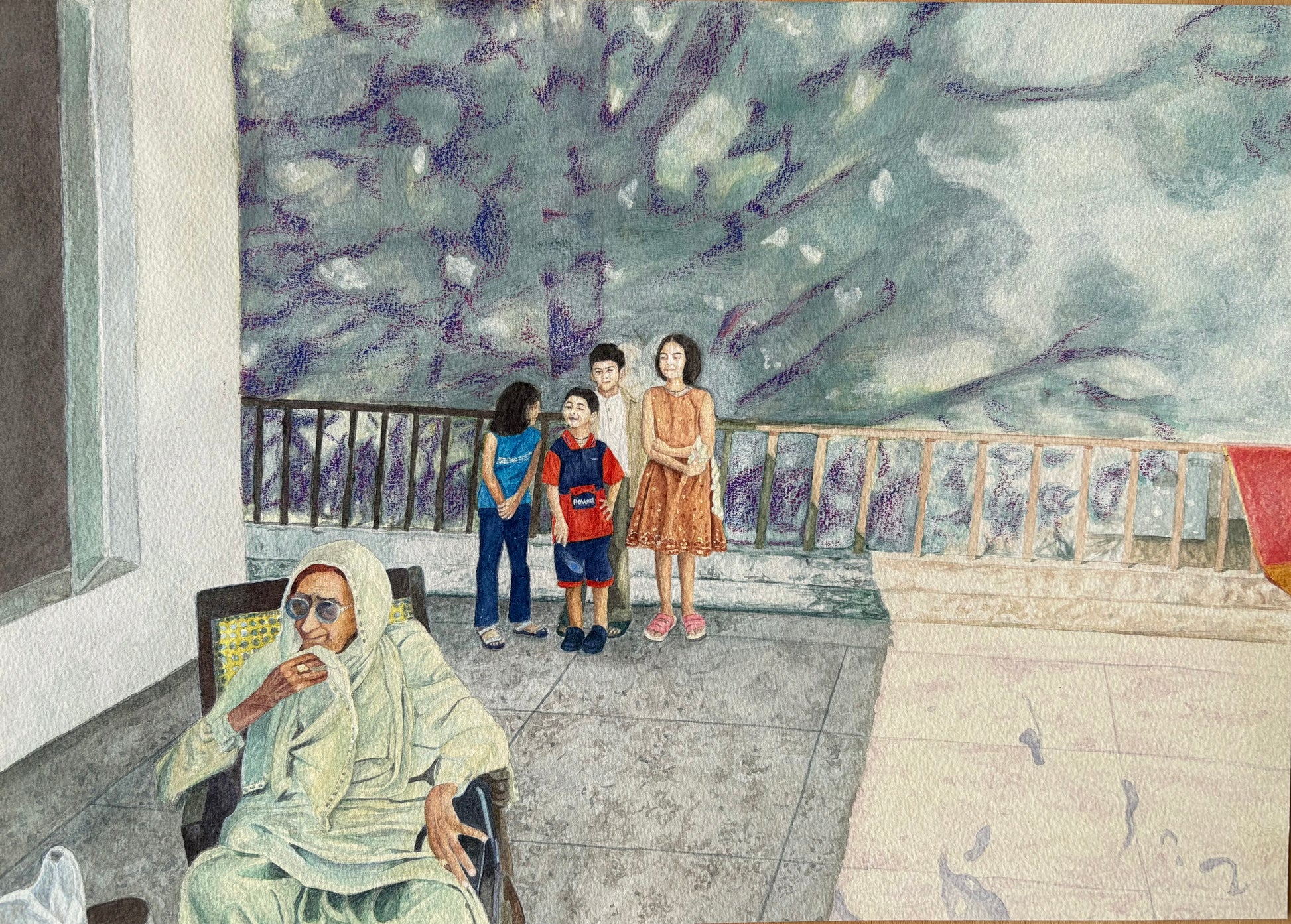 Under the Shade, Painting by Meerish Khan, Mixed Media on Paper, 16.9 x 11.8 inches