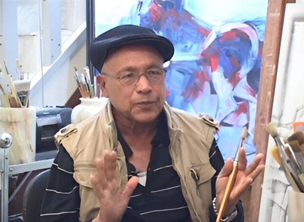 Mansoor Rahi (b. 1939) is a prominent Pakistani abstractionist painter, known for his cubist style and influence on local art. His work evolved from impressionism to abstraction, reflecting social and political issues, particularly terrorism. He taught at the Karachi School of Art, mentoring many artists. His notable series include Grey Genesis and The Black Terror, earning him numerous awards, including Pakistan's Pride of Performance in 200.