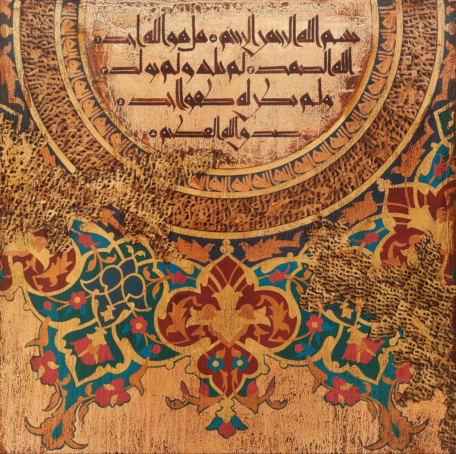 Untitled, Calligraphy Painting by Syed Rizwan, Mixed Media on Canvas, 24 x 24 inches