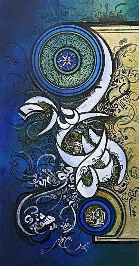 Tahir Bin Qalandar is a Pakistani visual artist and calligrapher known for blending Islamic calligraphy with contemporary art. Born in 1980, he studied Fine Arts and Calligraphy. His work, inspired by Sufi heritage, features bold colors and geometric patterns. He has exhibited internationally and significantly influenced modern Islamic art in Pakistan.