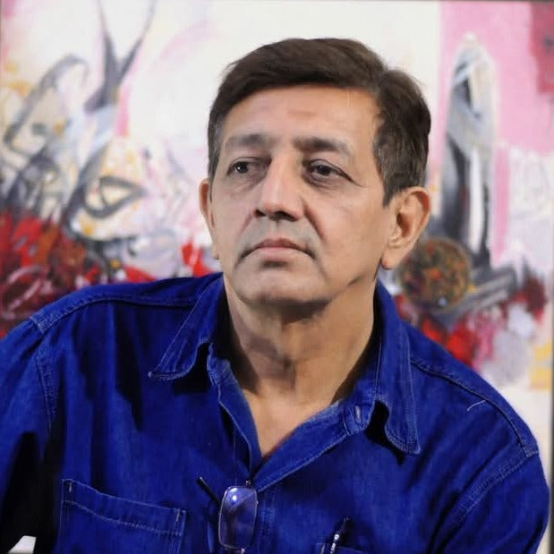 Javed Qamar, born in 1964, is a self-taught Pakistani calligrapher known for his antique-inspired style. His work features fine Arabic scripts, antique color palettes, and silver leafing, reflecting 16th-century calligraphy. His compositions often start centrally and expand outward, creating depth and visual narratives. Qamar's art has been exhibited internationally and is part of collections worldwide.