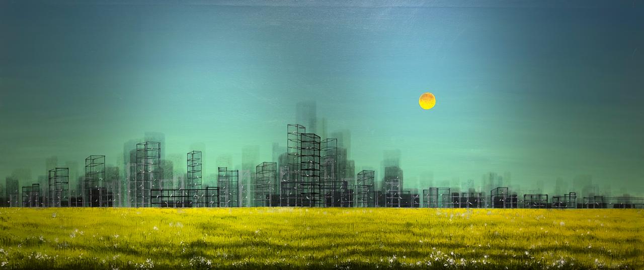 Untitled, Cityscape Painting by Safwan Bashir, Oil on Canvas, 70 x 30 inches