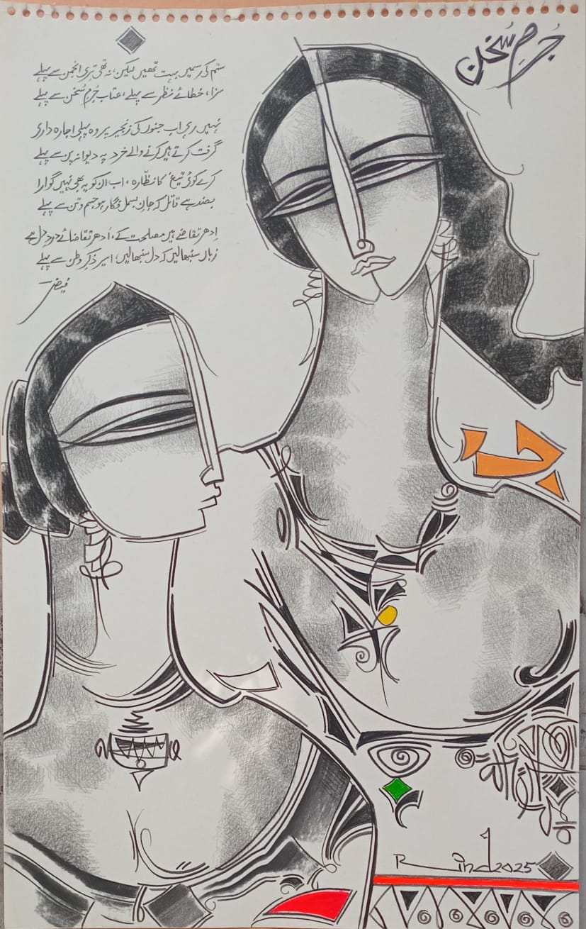 A.S. Rind, born in 1960 in Rahim Yar Khan, is a Pakistani artist renowned for his vibrant figurative paintings that blend traditional motifs with contemporary themes. A graduate of the Central Institute of Arts and Crafts, Karachi, he has held numerous exhibitions both nationally and internationally. His work often features stylized female forms, rich colors, and poetic inscriptions, reflecting the cultural heritage of regions like Rajasthan.