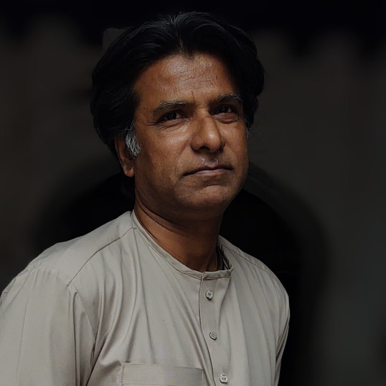 Faruq Siyal, born in 1968 in Dera Ismail Khan, Pakistan, is a renowned visual artist known for his expressive watercolor and oil paintings. His work, often featuring self-portraits, explores themes of inner struggle, peace, and cultural identity. Siyal has exhibited across Pakistan and received multiple awards, including the Khyber Pakhtunkhwa government's "Saqafat Kay Zinda Ameen" honor.