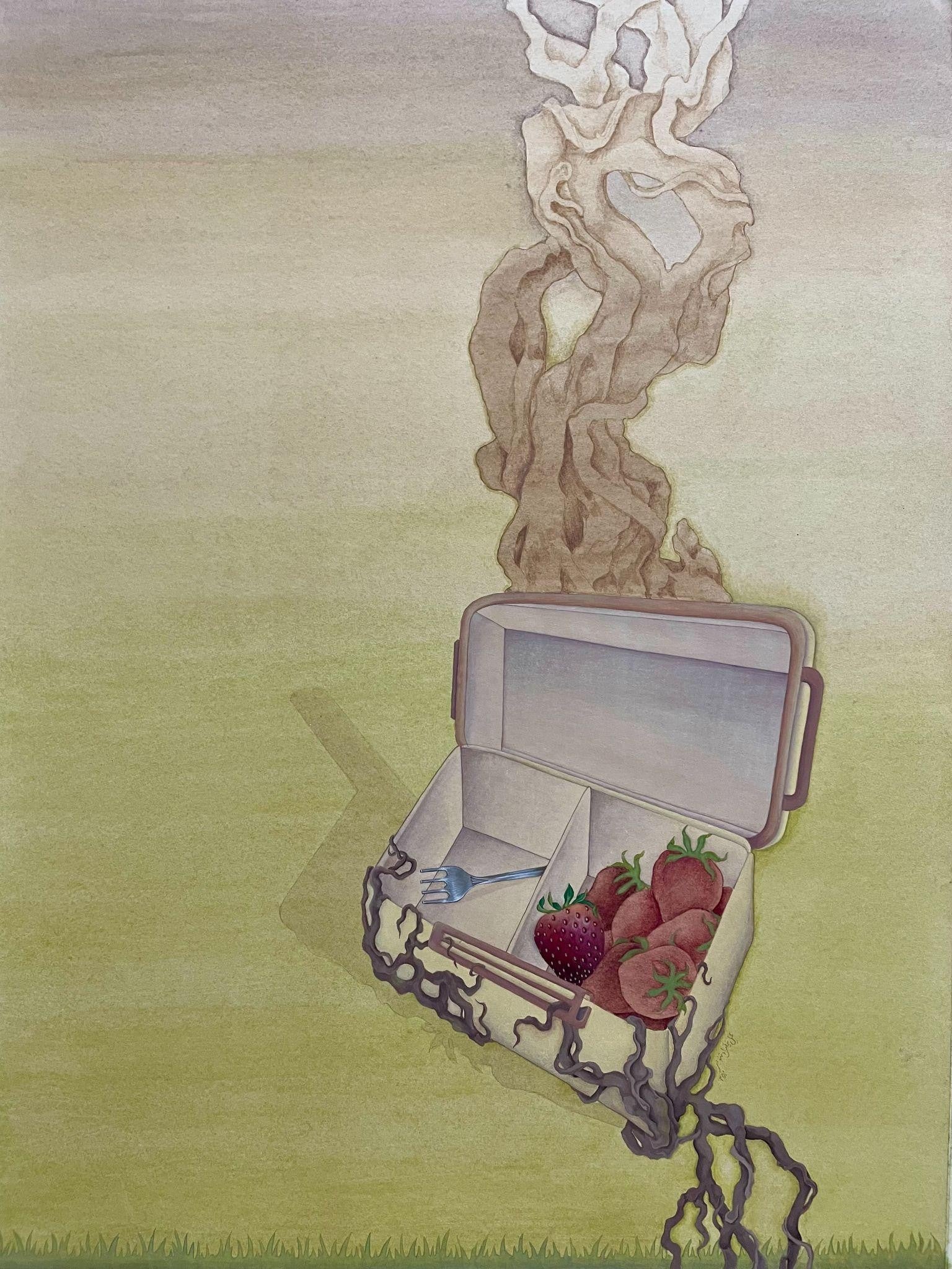 Strawberry Lunchbox, Still Life Painting by Khizra Tanvir, Gouache & Watercolour on Wasli, 14 x 18 inches