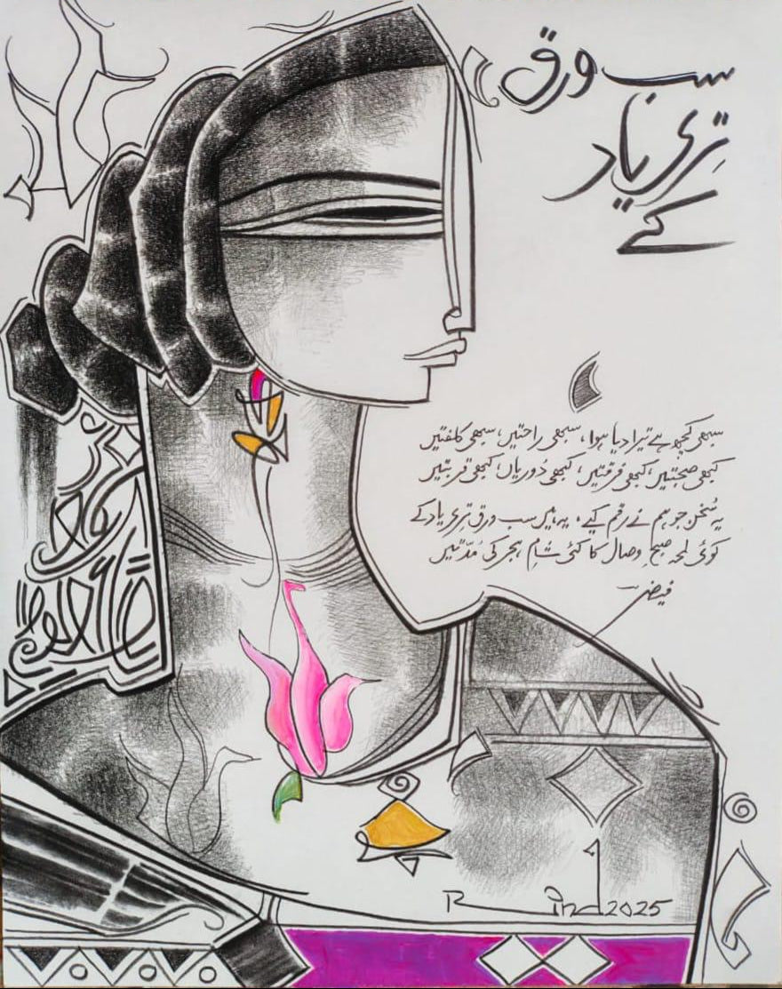 A.S. Rind, born in 1960 in Rahim Yar Khan, is a Pakistani artist renowned for his vibrant figurative paintings that blend traditional motifs with contemporary themes. A graduate of the Central Institute of Arts and Crafts, Karachi, he has held numerous exhibitions both nationally and internationally. His work often features stylized female forms, rich colors, and poetic inscriptions, reflecting the cultural heritage of regions like Rajasthan.