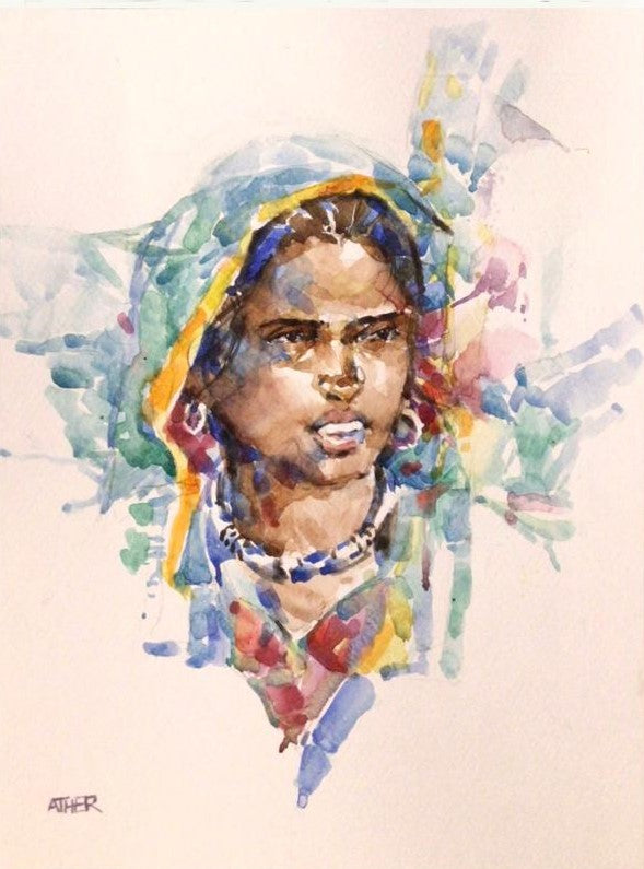 Untitled, Portrait Painting by Ather Jamal, Watercolour on Paper, 9 x 12 inches