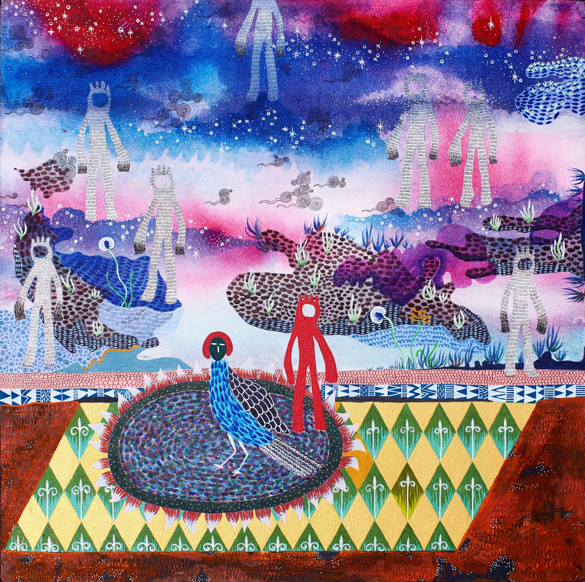 Arrival, Abstract Painting by Imran Mughal, Acrylic on Canvas, 18 x 18 inches