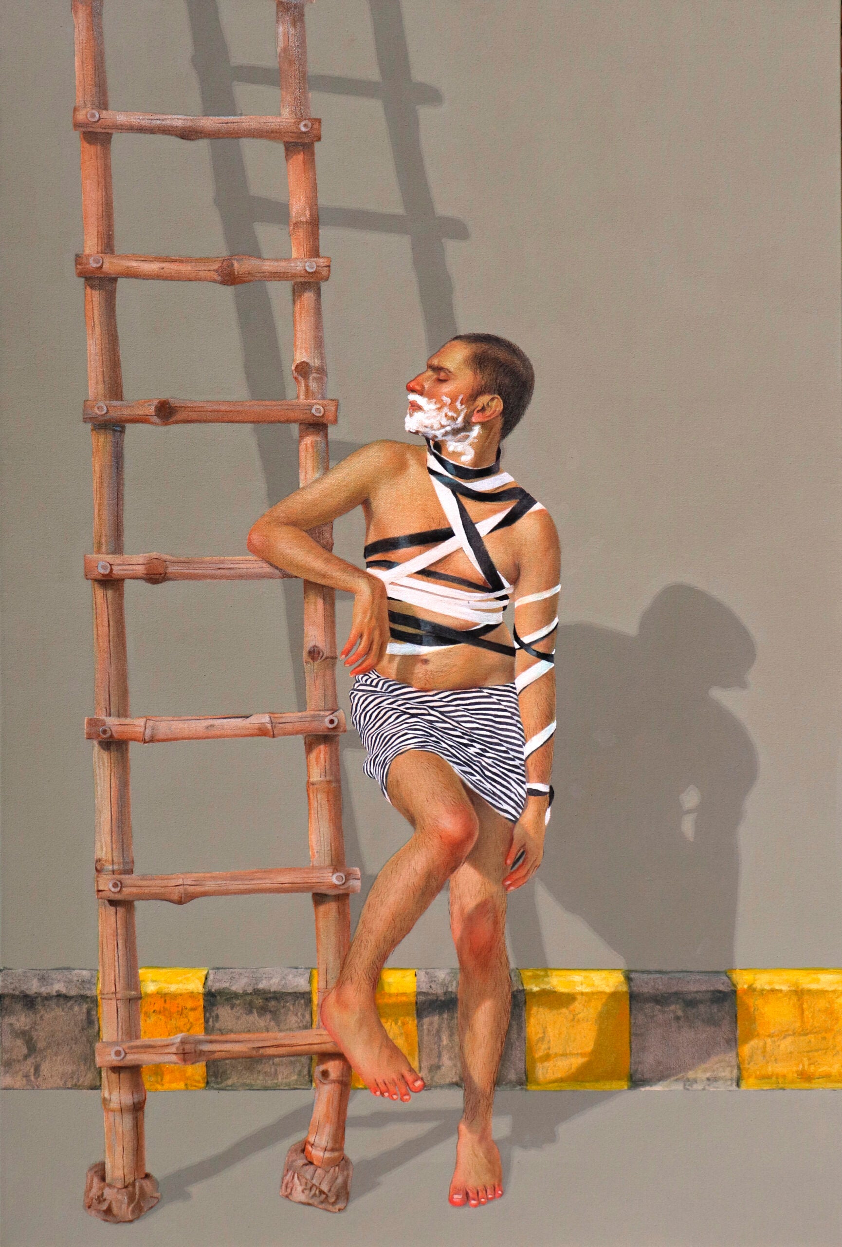 Wooden Captivity, Figurative Painting by Mariam Arshad, Oil on Canvas, 19 x 28.5 inches